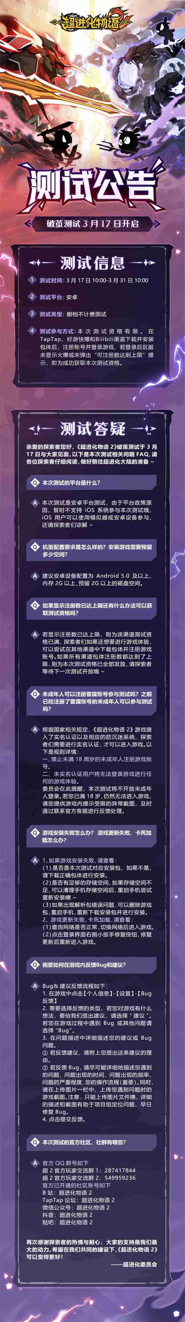 《超进化物语2》首次限号不计费删档测试——「破茧测试」将于3月17日开启,,,随我们确认测试细节,,,明天迈出踏上超进化大陆的第一步吧!!!!