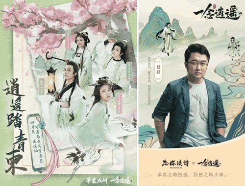 在游戏之外,,,《一念逍遥》一直致力于打造国风修仙原创IP,,,,以音乐、、漫画,,小说等衍生内容去延展丰富游戏内容。。。上线以来,,,整整做了十首歌,,,,小说应该也是喜马拉雅平台今年游戏品类小说收听量Top1的作品;而在营销的内容传播上,,,,《一念逍遥》也一直秉承比较国风的基调,,,,传递诗词、、文化内涵,,,,如如清明节定制汉服合作,,,传递中国传统的清明踏青、、、清明诗会文化。。