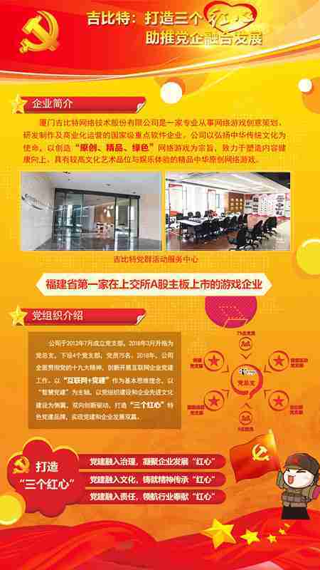 未来公司将全面学习贯彻习近平新时代中国特色社会主义思想和党的十九大精神,,持续强化“互联网+党建”的思维理念,,,,以“智慧党建”为主轴,,,,以党组织建设和企业先进文化建设为侧翼,,双向创新驱动,,引领有信仰、、有情怀、、、、有价值的新时代游戏研发运营,,,在不断发展壮大的同时,,,成为行业的“红色标杆”,,,实现党建和企业发展双赢。。。