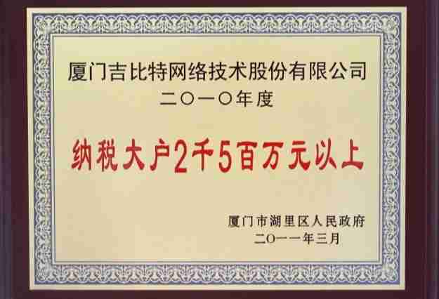 日前,,,,公司被厦门市湖里区人民政府授予了“2010年纳税大户”的荣誉称号,,,充分体现了公司一贯合法纳税、、诚信经营的良好企业社会公民行为。。